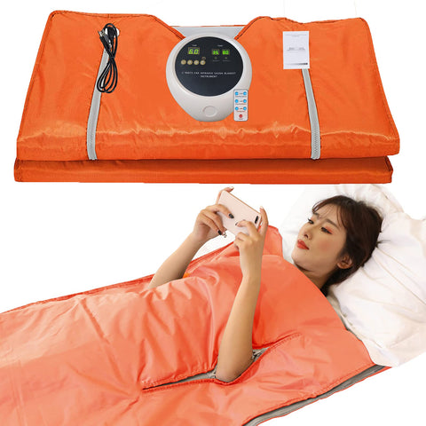 This sauna blanket has far infrared rays, which burn fat and make you sweat. If you use it regularly, you will achieve the purpose of detoxificatio and always keep your body healthy and relaxed.The material is the second generation Oxford material. Compared with other PU/PVC materials, its water resistance and strength are increased by 50%.Available in orange 、pink and purple.