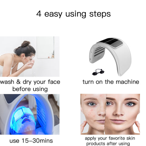 - 【7 Spectra Skin Care Machine】This commercial skin care machine includes seven different spectrums: red light, blue light, green light, red green light, red blue light, green cyan light, blue red light, which are used to improve different skin problems and restore your skin's vitality.